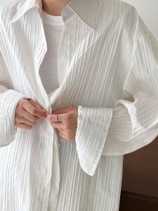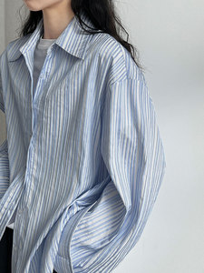 NS 韩系个性设计感条纹衬衫女2025秋季新款肌理上衣外套3668