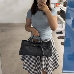 韩国小众设计包包休闲磨砂麂皮绒皮带扣手提包手拎包托特包个性