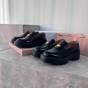 纯原 高端金币乐福鞋女英伦厚底增高一脚蹬单鞋粗跟开边珠真皮鞋