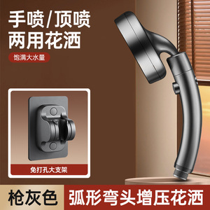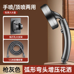 【枪灰套装3】弯头增压花洒+免打孔大支架