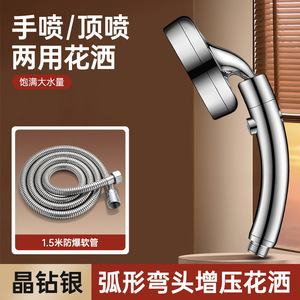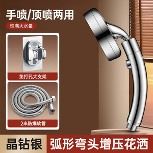 【银色套装2】弯头增压花洒+1.5米防爆管+大支架