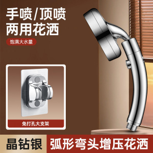 【银色套装3】弯头增压花洒+免打孔大支架