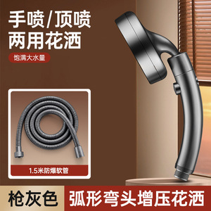 【枪灰套装2】弯头增压花洒+1.5米防爆管+大支架
