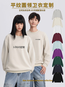 跨境男装美式大码卫衣休闲纯色重磅外套平纹潮牌圆领卫衣定制logo