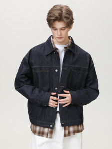 明线双口袋设计原牛工装牛仔夹克男秋季新款潮牌质感宽松翻领外套