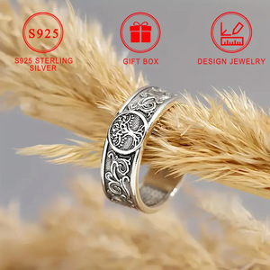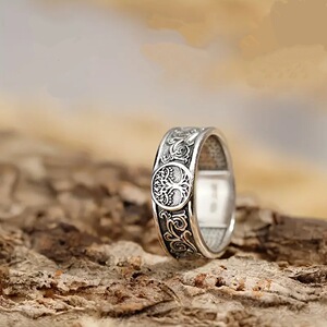 生命之树戒指女士复古泰银花朵雕纹经典指环首饰日常佩戴节日送礼