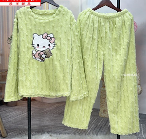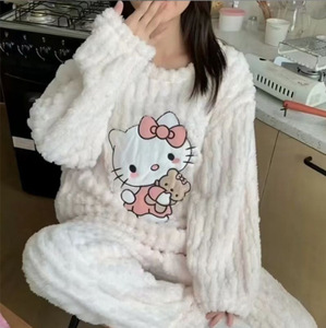 卡通猫珊瑚绒睡衣女2025冬季新款加绒加厚家居服冬季保暖长袖套装