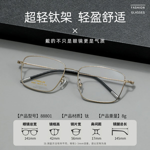 丹阳眼镜大脸高品质纯钛7.8g超细简约眼镜框方形全框近视镜X88801