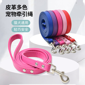 跨境爆款合金扣宠物用品牵引绳狗狗pu皮革狗链子遛狗外出猫咪通用
