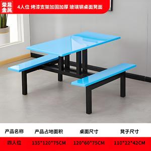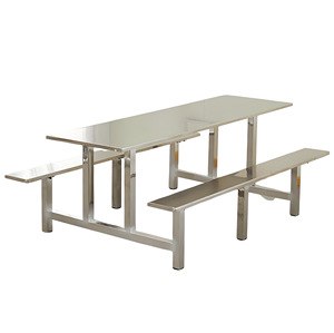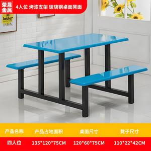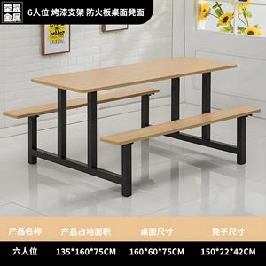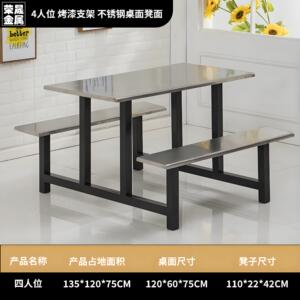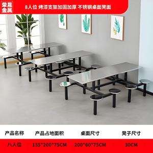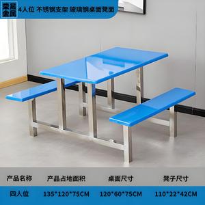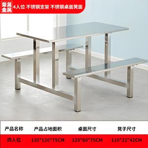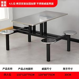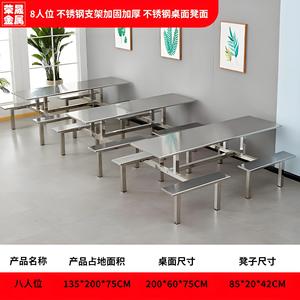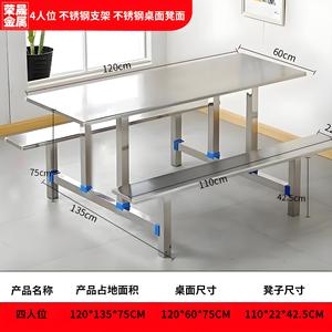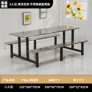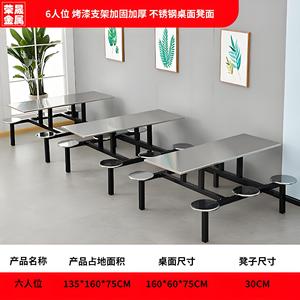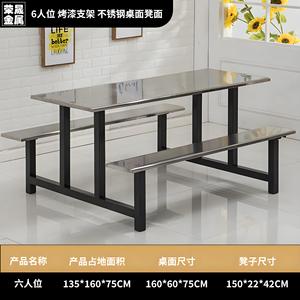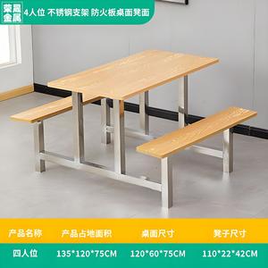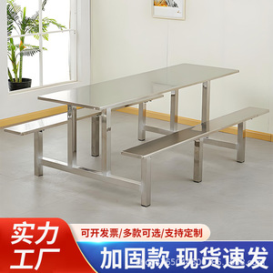 学校食堂不锈钢连体餐桌椅4人6人8人工厂员工饭堂快餐店桌椅组合