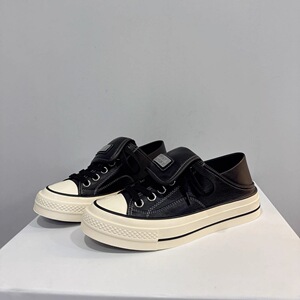 小白鞋女2025新款真皮厚底百搭可后踩单鞋一脚蹬懒人休闲板鞋
