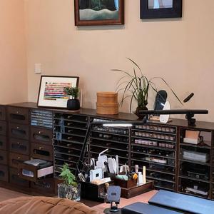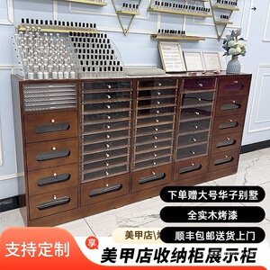 实木复古美甲柜子展示柜指甲油收纳柜甲油胶储物柜美甲店落地展柜