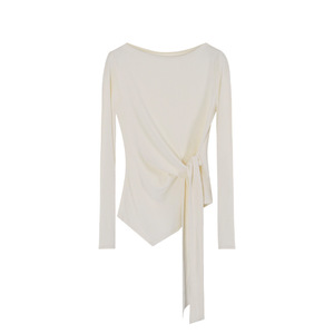 爱西里2025秋高级感斜肩侧绑带设计不规则下摆长袖针织上衣A1525