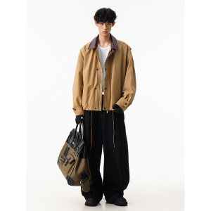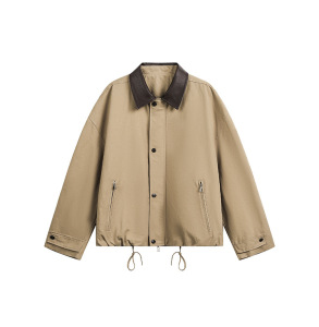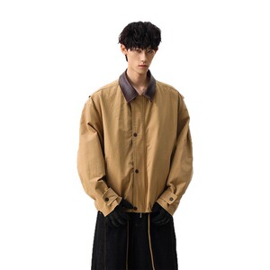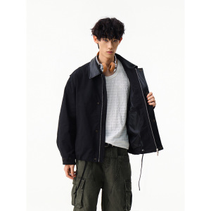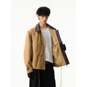 巴恩风机车皮领工装夹克25秋冬上新复古宽松情侣防风撞色外套开衫