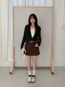 ICC 韩式美学 秋季休闲风工装短裙廓形A字显瘦百搭半身裙新款0816