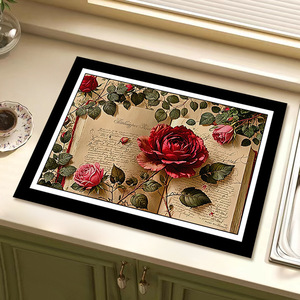 新中式厨房台面吸水垫防滑咖啡机吸水硅藻泥垫吧台沥水垫隔热杯垫