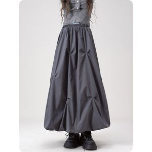 2025秋咖色褶皱花苞半身裙女2025年春夏新款高腰辣妹a字裙长裙子