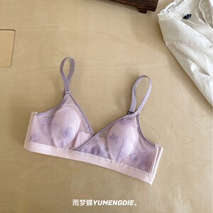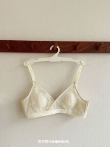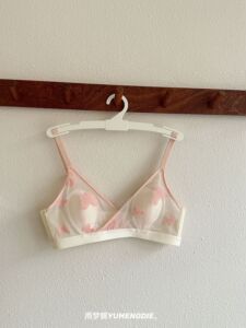薄款法式杯三角兔耳朵无痕蕾丝女小胸聚拢花房收副乳不空杯文胸罩