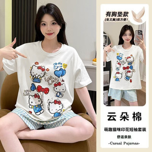 带胸垫2025年新款睡衣女款夏季短袖甜美可爱云朵棉休闲家居服套装