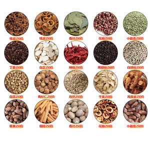 八角/桂皮/香叶/小茴香/花椒/辣椒/孜然/草果/白豆蔻/白胡椒/黑胡椒/白芷/陈皮/良姜/干姜