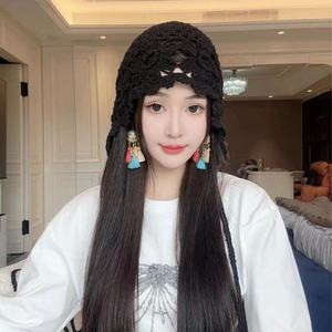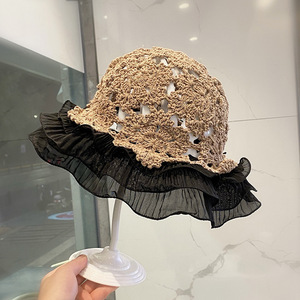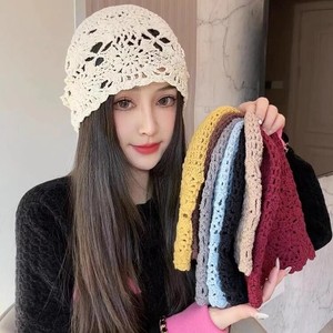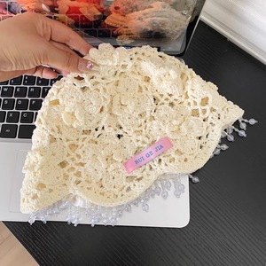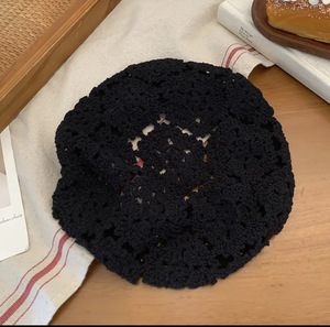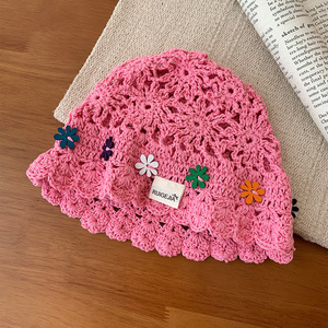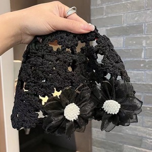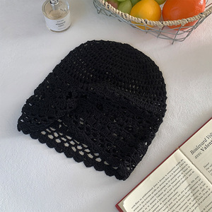 春夏薄款手工编针织帽女镂空钩花毛线帽甜美文艺显脸小包头堆堆帽