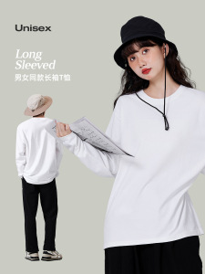 港风圆领纯棉长袖男女同款t恤休闲百搭上衣内搭显瘦减龄打底衫ins