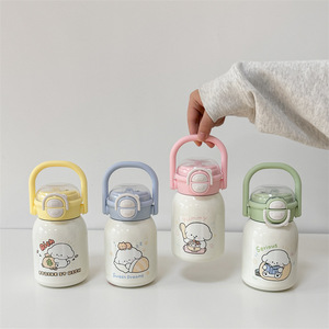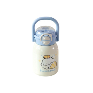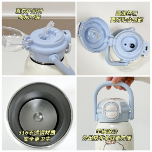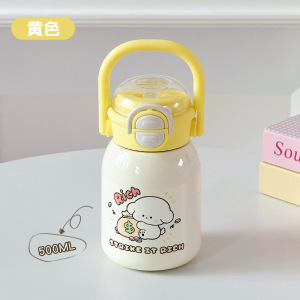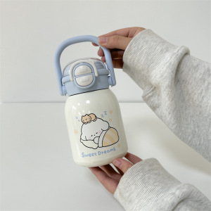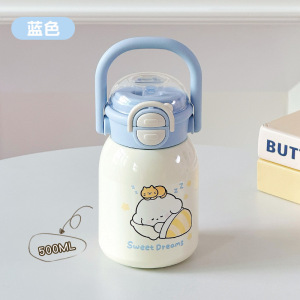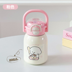 可爱小狗卡通儿童吸管杯500ml手提外出便携不锈钢保温杯上学专用
