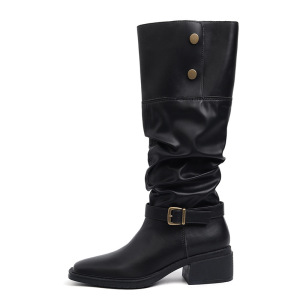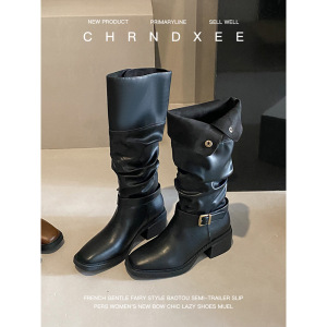 双靴筒~复古厚底过膝长靴女两穿皮带扣堆堆靴粗跟高筒西部牛仔靴