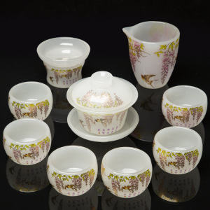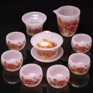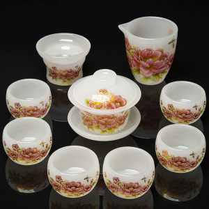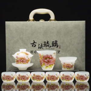 白玉花开富贵琉璃套装礼盒装