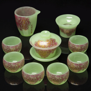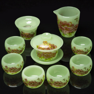 青玉牡丹花琉璃套装礼盒装