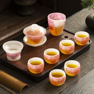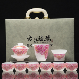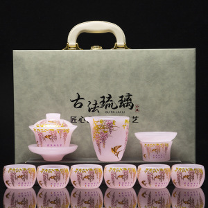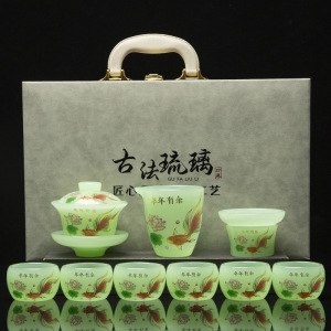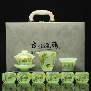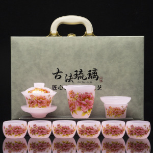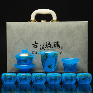 不掉色琉璃茶具套装家用轻奢高档功夫高端茶杯盖碗办公室送礼盒装