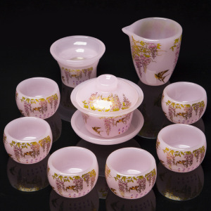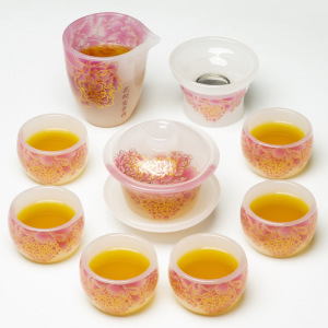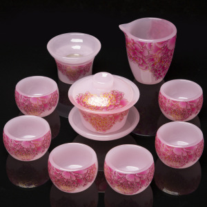 粉嫩花开富贵琉璃套装礼盒装