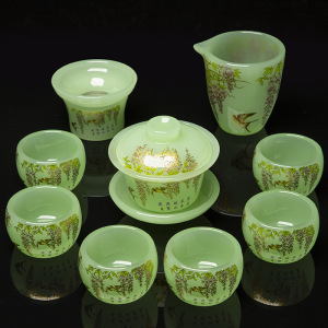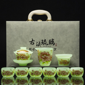 青玉花开富贵琉璃套装礼盒装