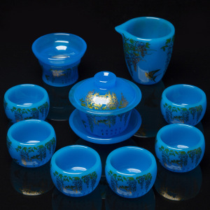 宝石蓝喜上眉梢琉璃套装礼盒装