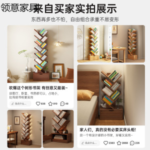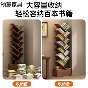 实木书架创意树形落地置物架家用客厅收纳架墙角书柜儿童储物柜子
