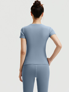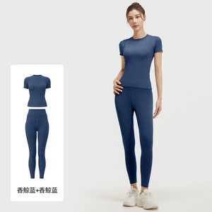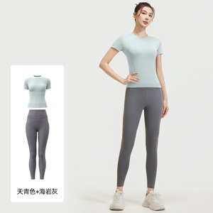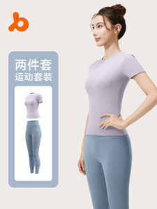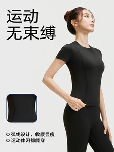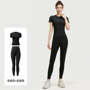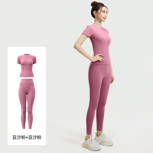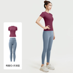 聚衣堂夏季修身瑜伽服跑步健身运动上衣纯色短袖短裤两件套女