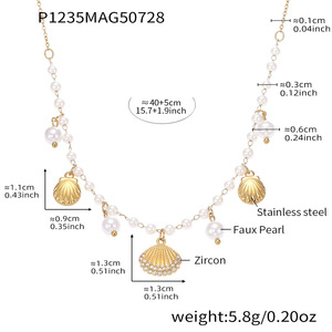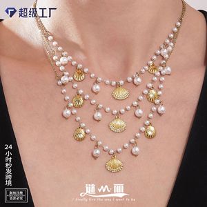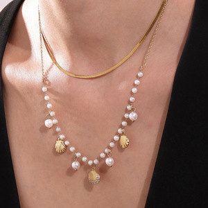 谜丽高质感仿珍珠贝壳锁骨项链18K金轻奢气质海洋风女生配饰批发