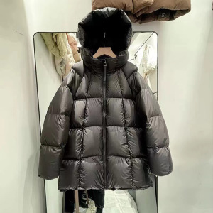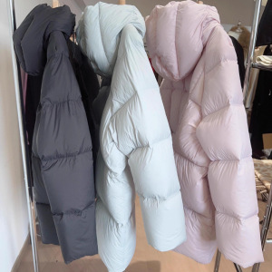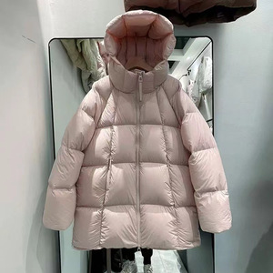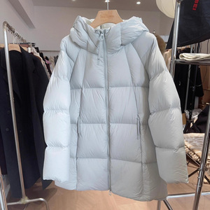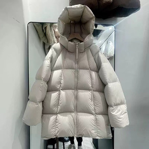 泡芙感轻柔2025冬季新韩版宽松连帽羽绒服女中长款加厚白鸭绒外套