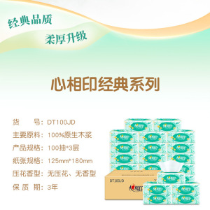 心相印抽纸繁花纸巾面巾纸3层100抽3包餐巾纸擦手纸卫生纸
