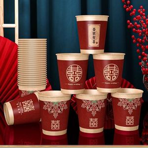 一次性结婚纸杯红色婚礼婚宴加厚喜事杯婚庆敬酒敬茶杯子用品大全