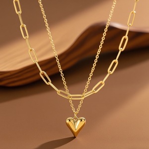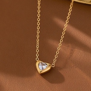 跨境新款时尚轻奢高级感爱心吊坠项链女气质配饰品心形钛钢锁骨链