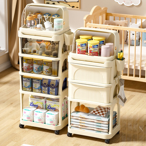 跨境新款宝宝奶瓶翻盖收纳架 婴儿儿童辅食防尘餐具置物架小推车