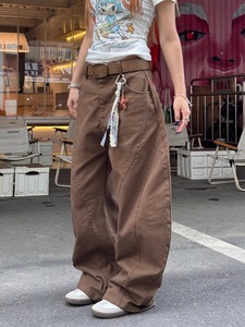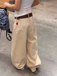 街头复古星星字母刺绣牛仔裤女美式小众设计感直筒宽松阔腿长裤子