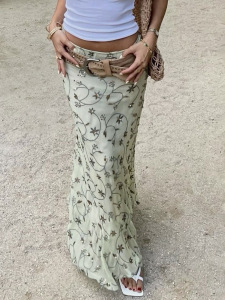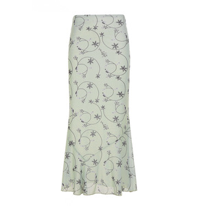 法式浪漫田园风清新绿色小碎花半身裙跨境低腰减龄百搭A字裙长裙