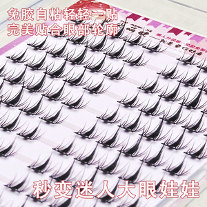 假睫毛分段式自然单簇免胶自粘持久眼睫毛化妆芭比小野兔漫画眼