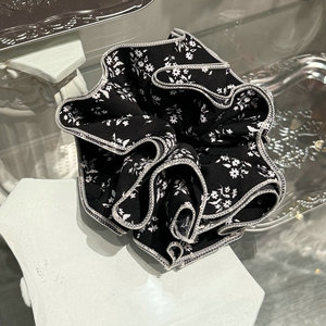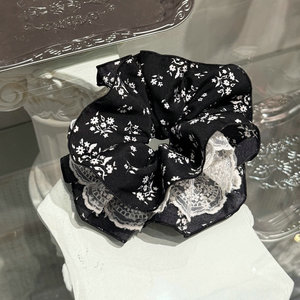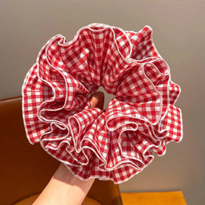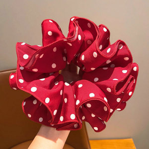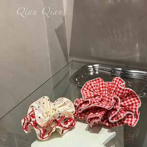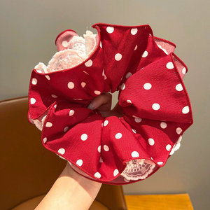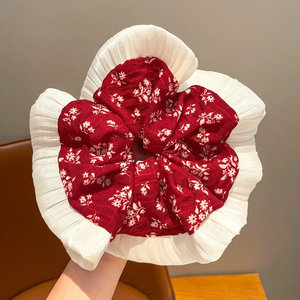 蕾丝边红色碎花大肠发圈气质温柔扎头发发绳少女丸子头发圈发饰