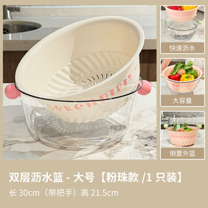 双层沥水篮-大号【粉珠款/1只装】