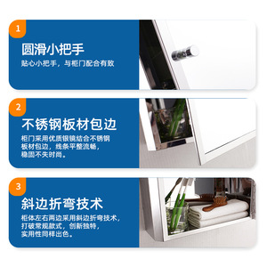 跨境批发小户型卫生间鏡櫃镜台浴室8K亮面不锈钢镜柜单独挂墙式厂