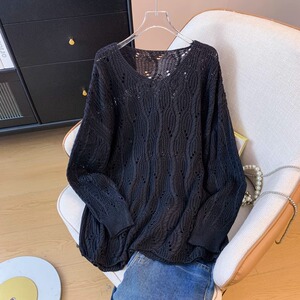 春夏新款宽松慵懒风镂空薄款针织衫套头大码高级感防晒毛衣女罩衫