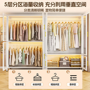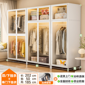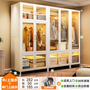 钢制家用衣柜卧室出租房用简易组装铁皮金属组合衣橱衣帽间收纳柜